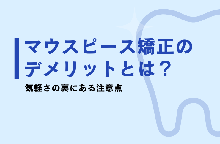この記事では、マウスピース矯正のデメリットや、後悔が生まれやすい理由を分かりやすくまとめています。これから矯正を検討している方が、より安心して判断できるよう、ポイントを丁寧に整理してお伝えします。